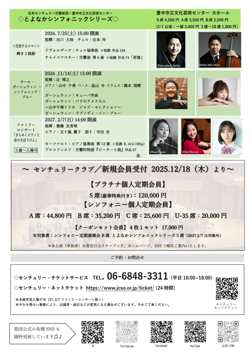 また来シーズンより、豊中市立文化芸術センターとの「センチュリー豊中名曲シリーズ」に替わって、