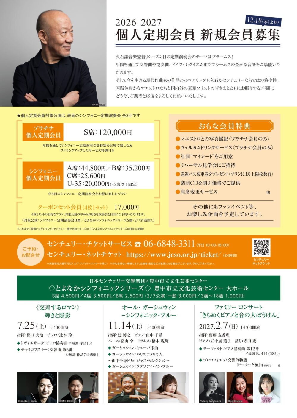 日本センチュリー交響楽団の2026-27シーズン 個人定期会員の新規お申込を、12月18日(木)10時~