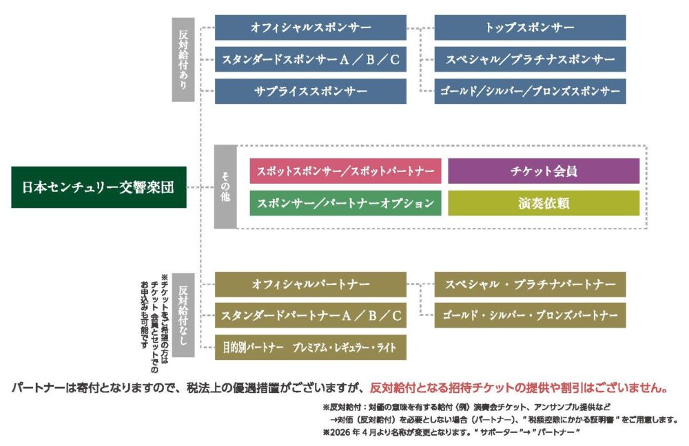 日本センチュリー交響楽団の運営に対しての物品または役務等の提供によるご協賛となります。